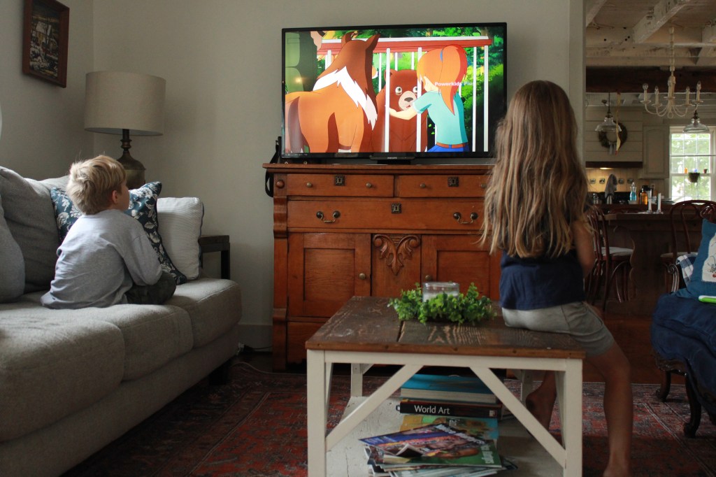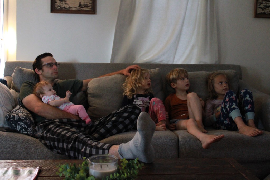 After dinner, we nestled into the living room and watched “The Love Bug” The kids loved it and somehow Jake ended up with all four and I got a couch to myself. Not complaining though; I enjoyed my view.