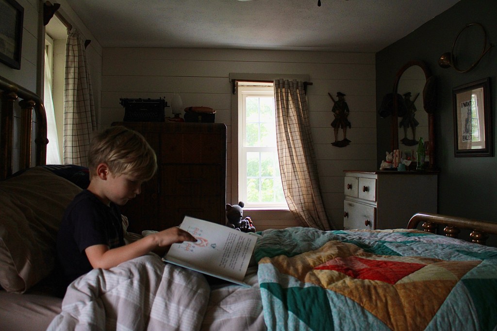 I’m a huge fan of natural light. Usually the lights stay off until we’re all squinting and then I turn on the lamps, string lights, and anything that gives a soft, warm glow. Jake turns on the overhead lights (which I’m not even sure why we installed) and I’m usually following behind switching them off. He calls all of my little lights, a waist of electricity, I call it ambiance…. and on rainy days, we have A LOT of ambiance.