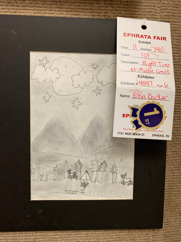 Fall of 2023 was full of fun, beauty, and surprises. It was the first year Elsa entered the Ephrata fair fir a drawing competition. She won 1st place in her division.